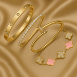 - Trinity & Clover Bracelet: A delicate and adjustable bracelet (16+5 cm) with charming details, available in gold or silver.