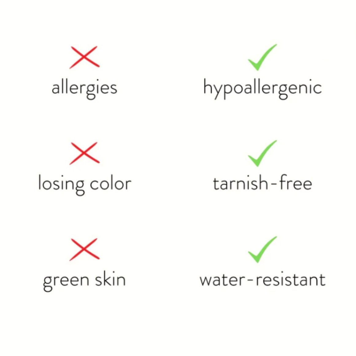 Sensitive skin approved. No nickel, no irritation, just comfort.
