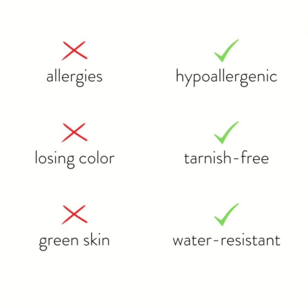Sensitive skin approved. No nickel, no irritation, just comfort.